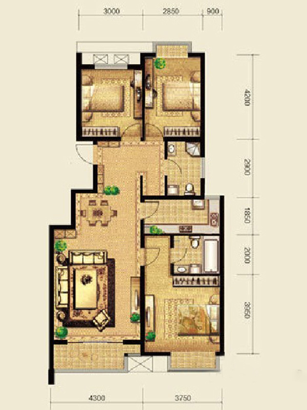 各个空间方正,后期 高。整个空间全明通透,采光良好,同时利于居住空间通风;整体空间布局合理,能够保证动静分离和居室通风,方便使用;各个功能区的尺寸比例规范,布局合理,能很好地满足日常功能需求,整体空间开阔,采光充足,居住舒适度好;公摊小, 。小区公共设施可能不够完善。