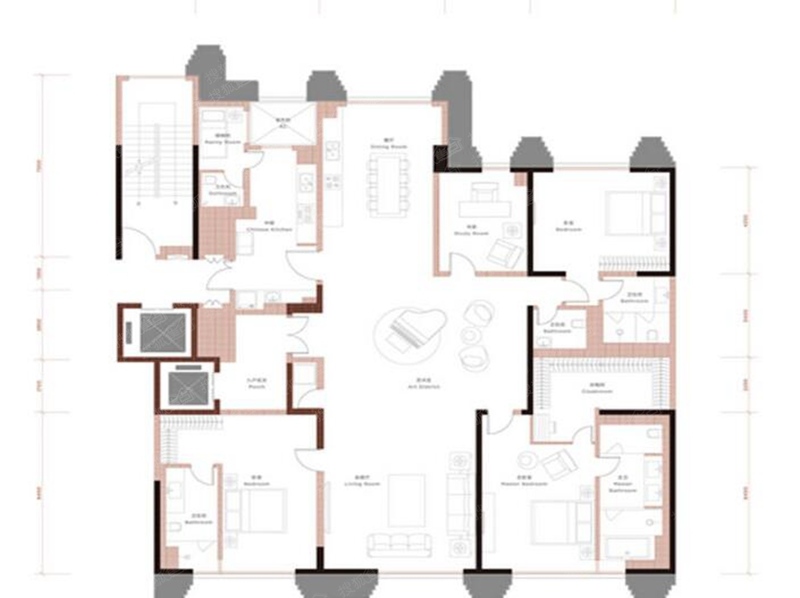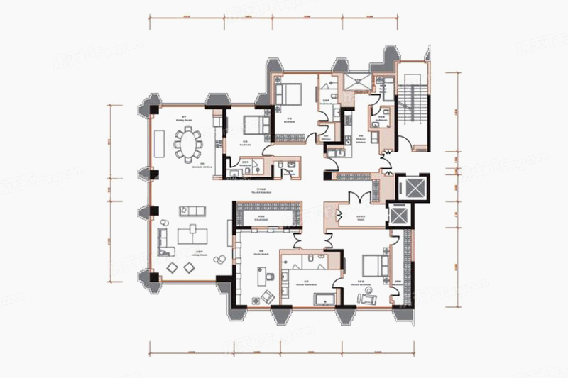 各个空间户型方正,方便室内家具布置;全明户型,各部分空间均有窗,可保证整体空间采光和通风,居住舒适度好;整体空间布局合理,能够保证动静分离和居室通风,方便使用;各个功能区的尺寸比例规范,布局合理,能很好地满足日常功能需求,整体空间开阔,采光充足,居住舒适度好。
