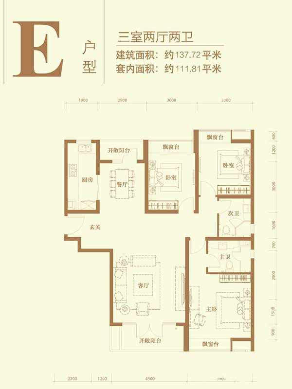 整体户型方正,活动区域开阔,居住舒适度高;全明户型,各部分空间均有窗,可保证整体空间采光和通风,居住舒适度好;整体空间布局合理,能够保证动静分离和居室通风,方便使用;卧室厨卫等各个功能区的面积大小都比较合理,居住体验便利,整体舒适度高;公摊低于15%,属于目前市场中公摊很低的户型。