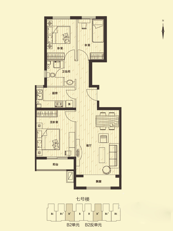 各个空间户型方正,方便室内家具布置;全明通透户型,居住舒适度较高,整个空间采光充足,利于后期居住;卫生间门朝向主要活动区域,私密性一般;客厅、卧室、卫生间和厨房等主要功能间的尺寸以及比例适中,有利于采光和通风,居住起来舒适、方便;公摊低于15%,属于目前市场中公摊很低的户型。