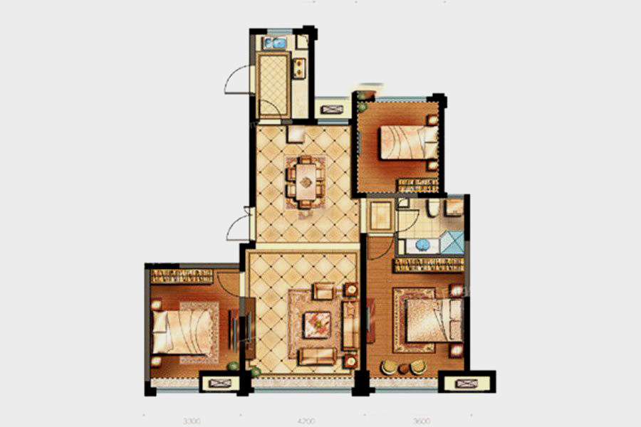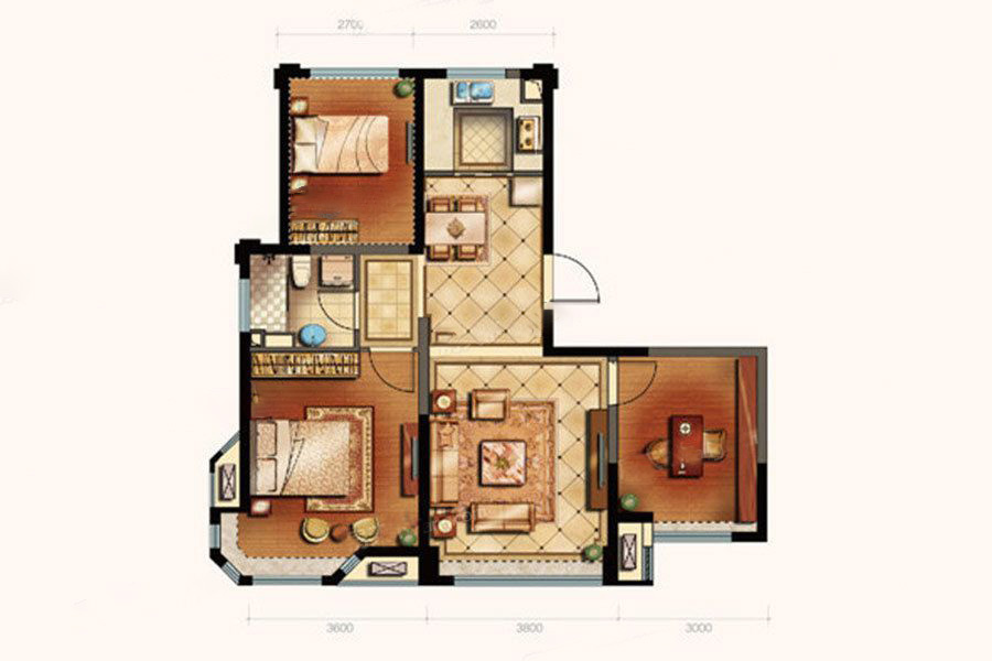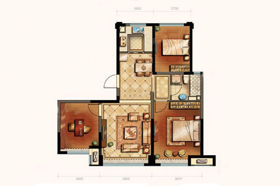 各个空间户型方正,方便室内家具布置;全明通透户型,居住舒适度较高,整个空间采光充足,利于后期居住;整体空间布局合理,能够保证动静分离和居室通风,方便使用;卧室厨卫等各个功能区的面积大小都比较合理,居住体验便利,整体舒适度高;