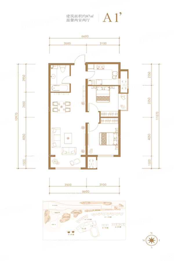 各个空间户型方正,方便室内家具布置;整个空间全明通透,采光良好,同时利于居住空间通风;整个户型空间布局合理,做到了干湿分离、动静分离,方便后期生活;客厅、卧室、卫生间和厨房等主要功能间的尺寸以及比例适中,有利于采光和通风,居住起来舒适、方便;