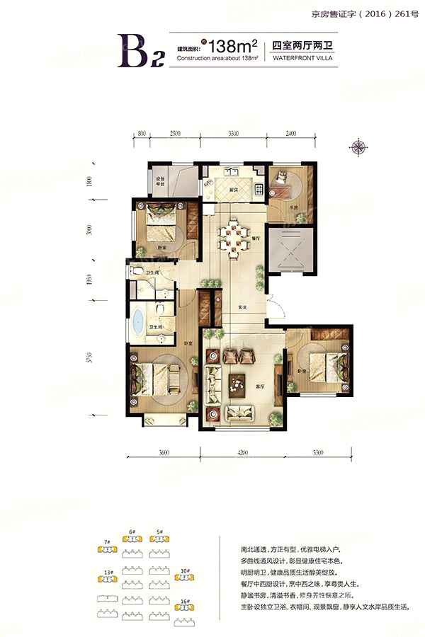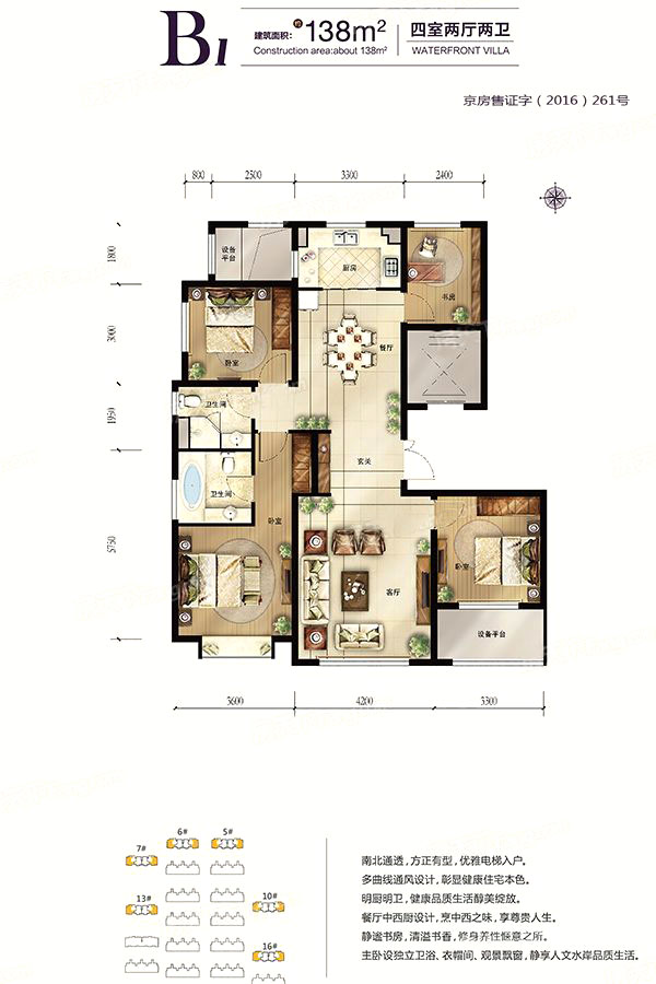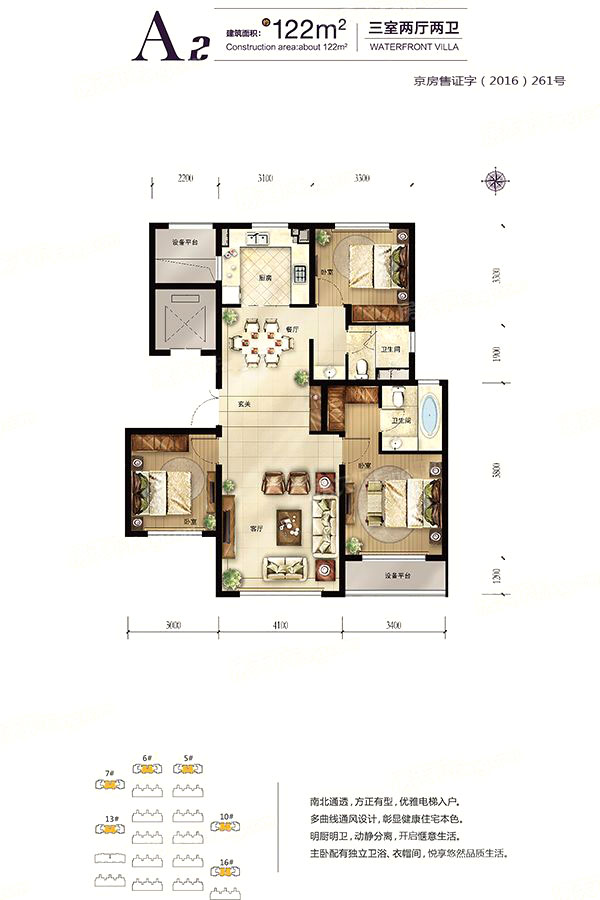 在内部空间设计上提供了精致家装,空间组合更注重会客、餐饮、学习、洗漱、睡眠等功能空间的逻辑,厨房、卫浴、收纳、玄关、厅房等从客户的实际使用角度出发,合理设计实用功能,注重细节和使用的舒适度,实现人性化设计。 干湿分离,U型厨房,客厅4.2米观景面宽,南向双卧面宽3.6米、3.3米,12米进深:不间断