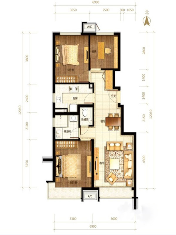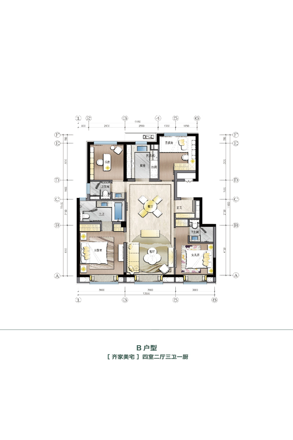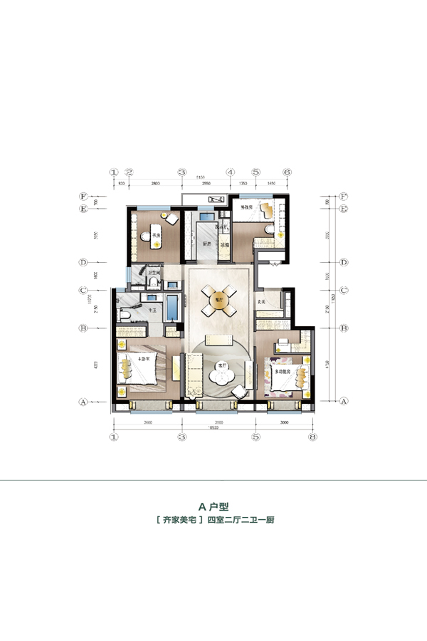 各个空间户型方正,方便室内家具布置;全明户型,各部分空间均有窗,可保证整体空间采光和通风,居住舒适度好;卧室作为休息区域,门朝向客厅或餐厅时,私密性一般;卫生间门朝向主要活动区域,私密性一般;卧室厨卫等各个功能区的面积大小都比较合理,居住体验便利,整体舒适度高;