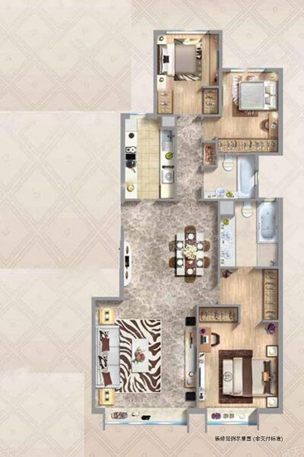 整体户型方正,活动区域开阔,居住舒适度高;户型不是南北通透,整体空间无穿堂风;整个户型空间布局合理,做到了干湿分离、动静分离,方便后期生活;主卧的面宽进深比不在标准范围内,卧室家具的选取和摆放位置尤为重要,合适的家具布局可以提升居住舒适度;