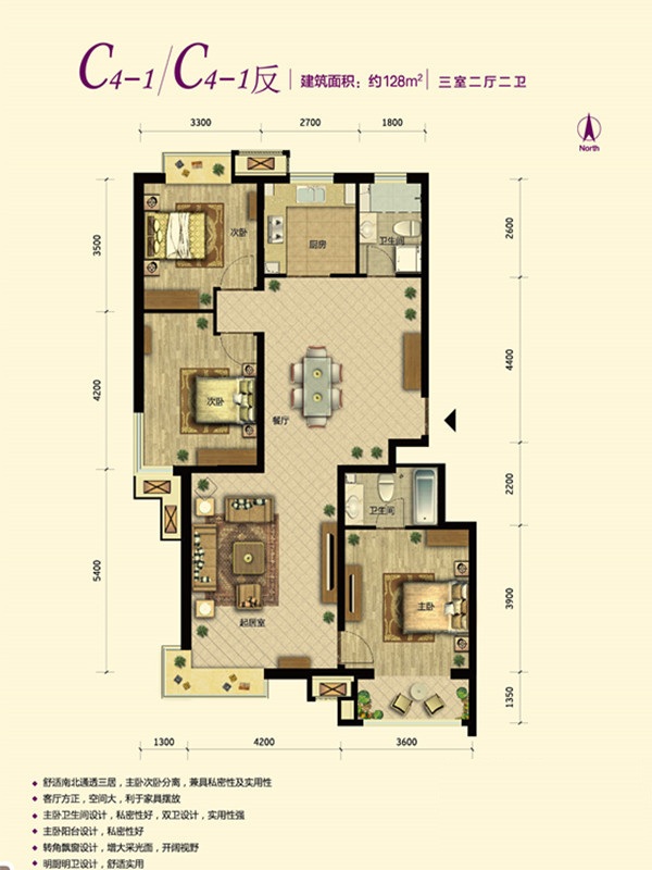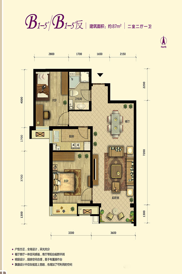 各个空间户型方正,方便室内家具布置;全明户型,各部分空间均有窗,可保证整体空间采光和通风,居住舒适度好;居室布局合理,通风良好,动静分离,兼顾到了卧室和卫生间的私密性;各个功能区的尺寸比例规范,布局合理,能很好地满足日常功能需求,整体空间开阔,采光充足,居住舒适度好;公摊高于15%且低于25%,符合